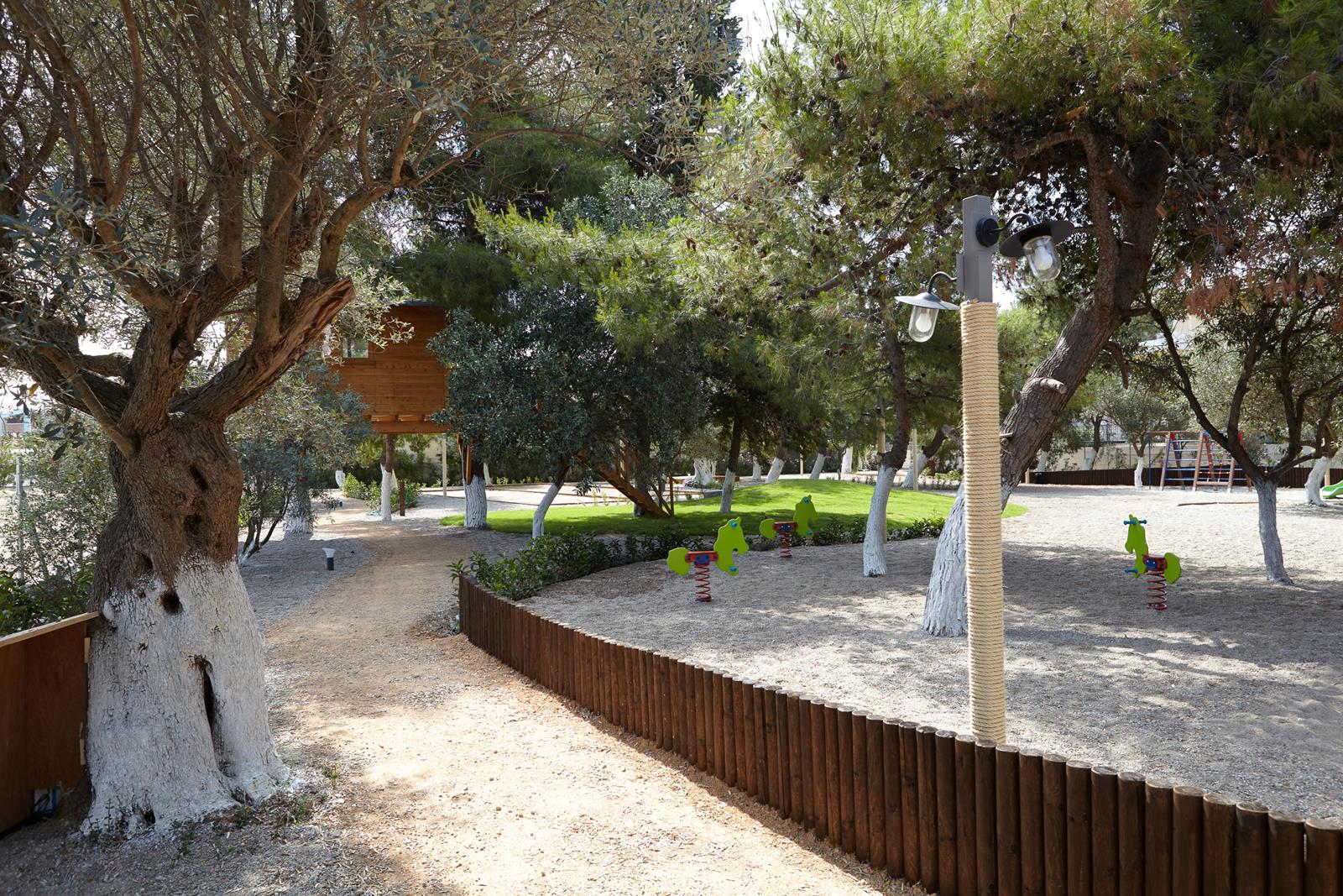 Hakuna Matata play forest is located next to the hotels’ central building. The 2,000 m² area is surrounded by tall pine trees providing natural shade throughout the day. It includes a hut (Marika) for fun activities, swings for kids of all ages, a seesaw, a slide, climbing facilities, a sandpit and a tree house.