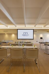 Cette salle de réunion à haut plafond se trouve au premier étage du Resort et dispose de fenêtres allant du sol au plafond avec une vue magnifique sur le golfe d’Eubée, la piscine en plein air et le bosquet de pins. La véranda de la salle de réunion offre une vue spectaculaire sur la mer et le littoral de l’Attique orientale, à la lumière du jour ou au clair de lune.